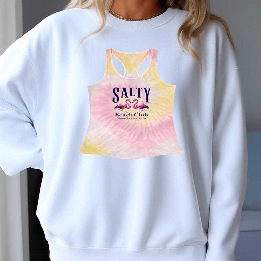 Tie Dye Racerback Tank Top: Salty Beach Club Cotton Blend Sweatshirt