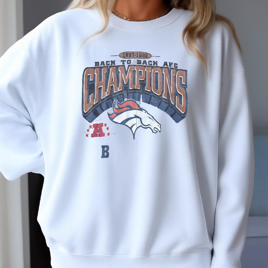 Vintage 90's Back 2 Back Afc Champions Denver Broncos Super Bowl Gray Shirt Sz L Sweatshirt