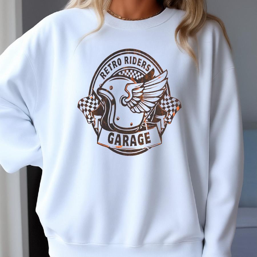 Motorcycle Retro Riders Garage Shirt, Motorcycle Gift For Girl, Gift For Sister, Motorcycle Gift For Him, Biker Babe Shirt, Biker Chick Sweatshirt