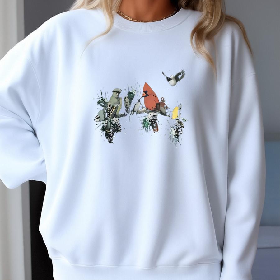 Vintage Red Cardinals Snowbird Sweatshirt Oversize Aesthetic Preppy Habitat Printed Snow Boxy Jumper Winter Forest Cardinal Bird Crewneck 3x Sweatshirt