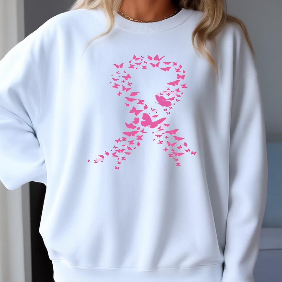 Breast Cancer Awareness Boxy/baby Tee: Pink Ribbon Butterfly Shirt Sweatshirt