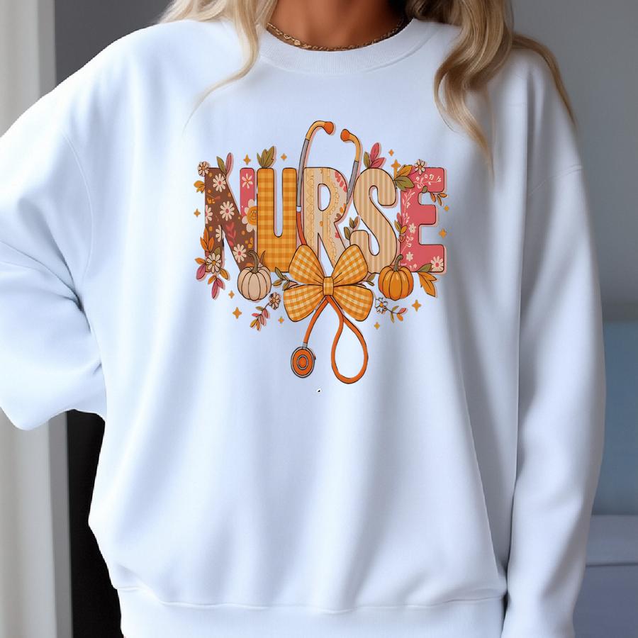 Customizable Fall Nurse Sweatshirt: Coquette Bow, Personalized Rn Sweatshirt