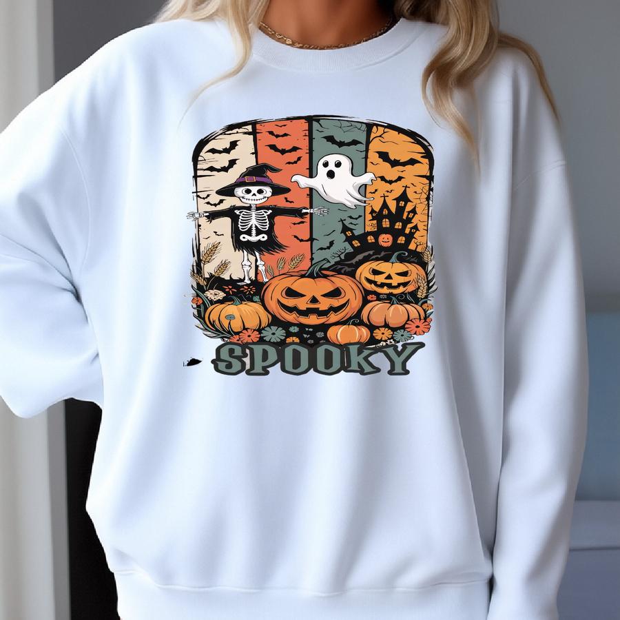 Plus Size Spooky Gildan Heavyweight Sweatshirt, Cute Halloween Tee, Football Season, Unisex Shirte Aesthetic Thanksgiving Shirt S-5xl Sweatshirt