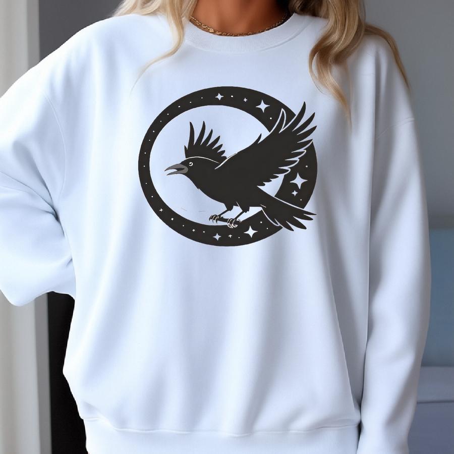 Spooky Crow Halloween Gildan Sweat Shirt, Cute Costume Pumpkin Tee, Spooky Season T-shirt, Unisex Ghost Aesthetic Fall Shirt Sweatshirt