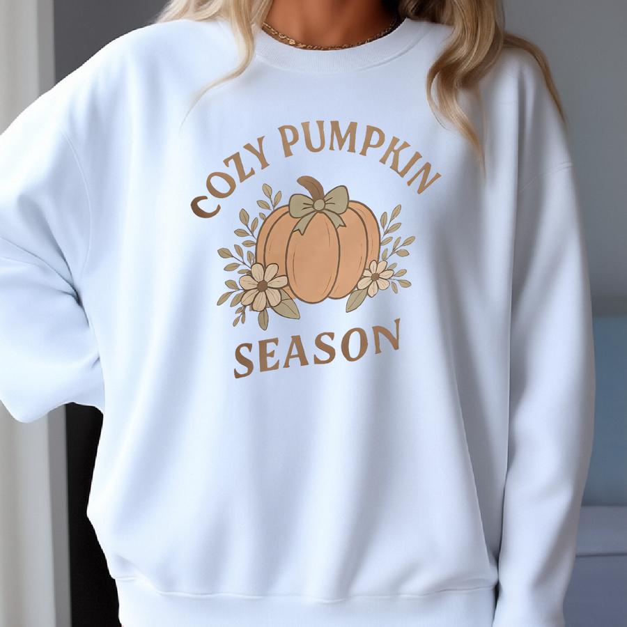 Cozy Pumpkin Season Crewneck Sweatshirt, Cute Fall Sweater For Women, Autumn Floral Pullover, Offdanforth Essentials Tier Sweatshirt