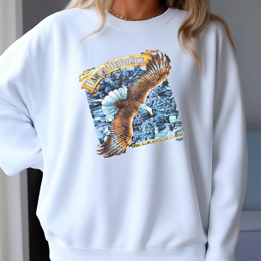 Vintage 1989 3d Emblem The Eagle Soars Alone Venice Beach California 80s Motorcycle Biker Graphic Shirt Usa Size M/l Sweatshirt