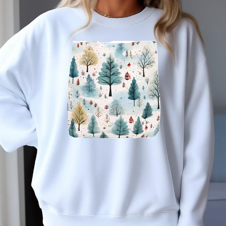 Winter Forest Tee Holiday Market Christmas Book Tote Snowy Woodland Shopping Travel Nature-inspired Reusable Gift Sweatshirt