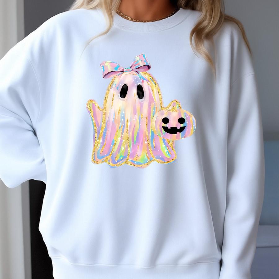 Personalised Iridescent Ghost Pumpkin Baby Outfit, Coquette Halloween Baby Clothes, Girly Halloween Baby Romper, Cute Ghost Baby Gift Sweatshirt
