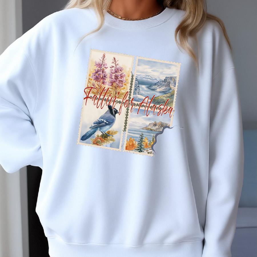 Falling For Alaska Tee: Blue Jay Landscape Art Sweatshirt