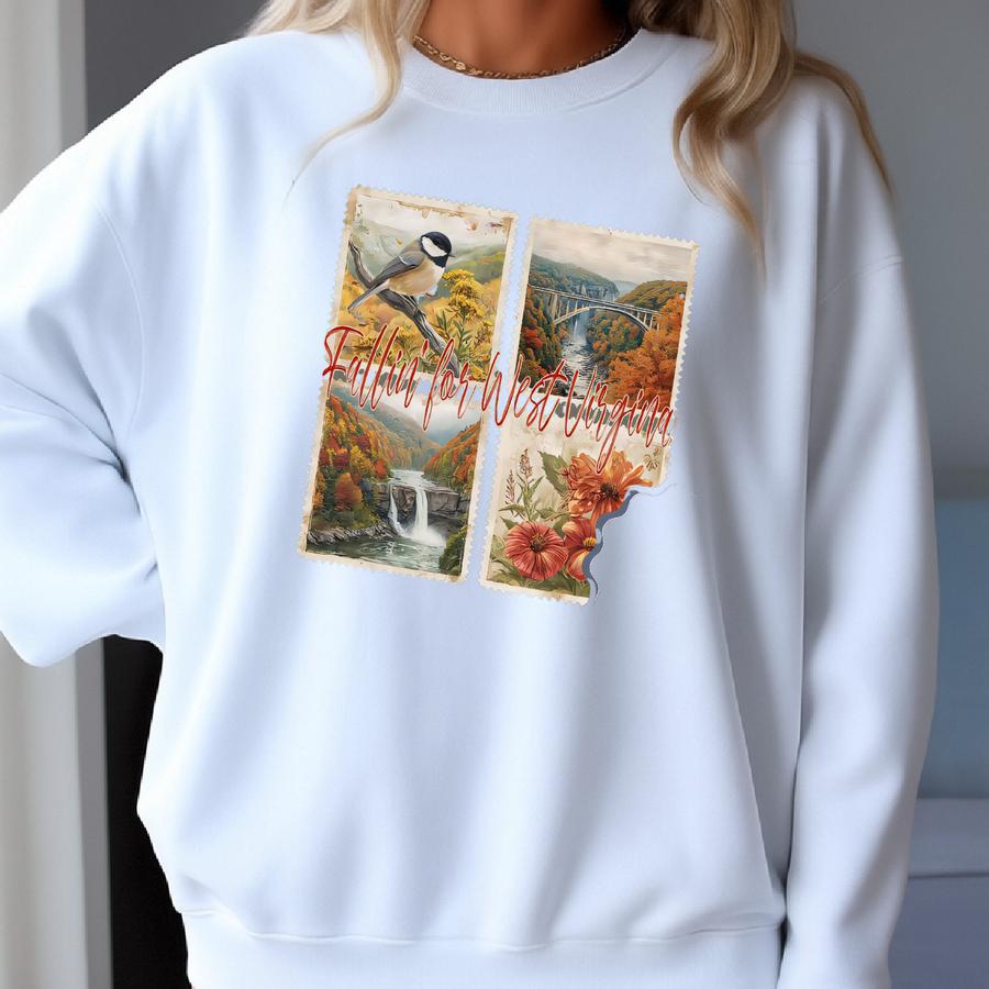 West Virginia Nature Graphic Tee Or Sweatshirt: Chickadee, Bridge, Waterfall Sweatshirt