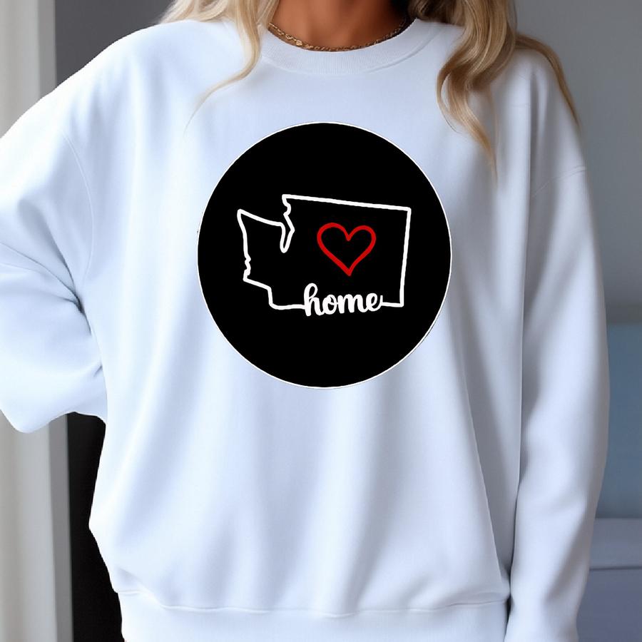 Washington Crewneck Sweatshirt, State Outline With Heart Design, Minimalist Northwest Pride Sweater, Cozy Home State Gift Sweatshirt