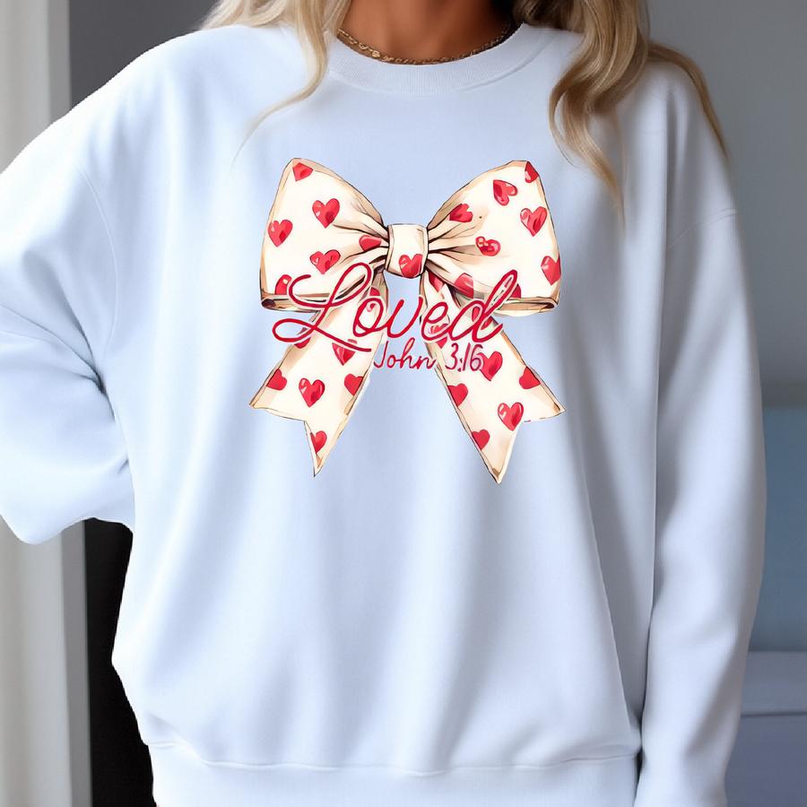 Youth Valentine's Sweatshirt: Coquette Heart Bow, Christian Gift Sweatshirt