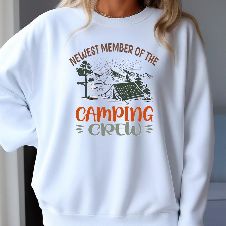 Newest Member Of The Camping Crew Baby Romper Sweatshirt, Camping Bodysuit, Camping Adventure , Newborn Outfit Sweatshirt