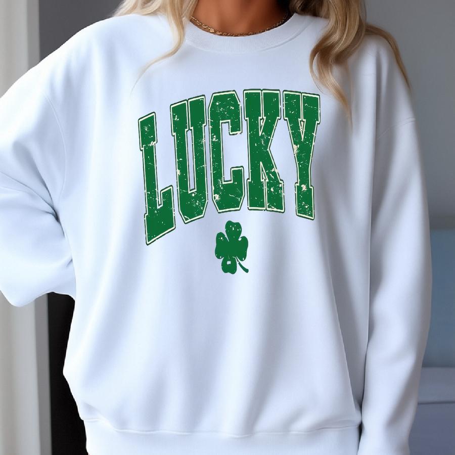 Varsity Lucky St Patricks Day Sweatshirt Or Hoodie: Shamrock Sweater Sweatshirt