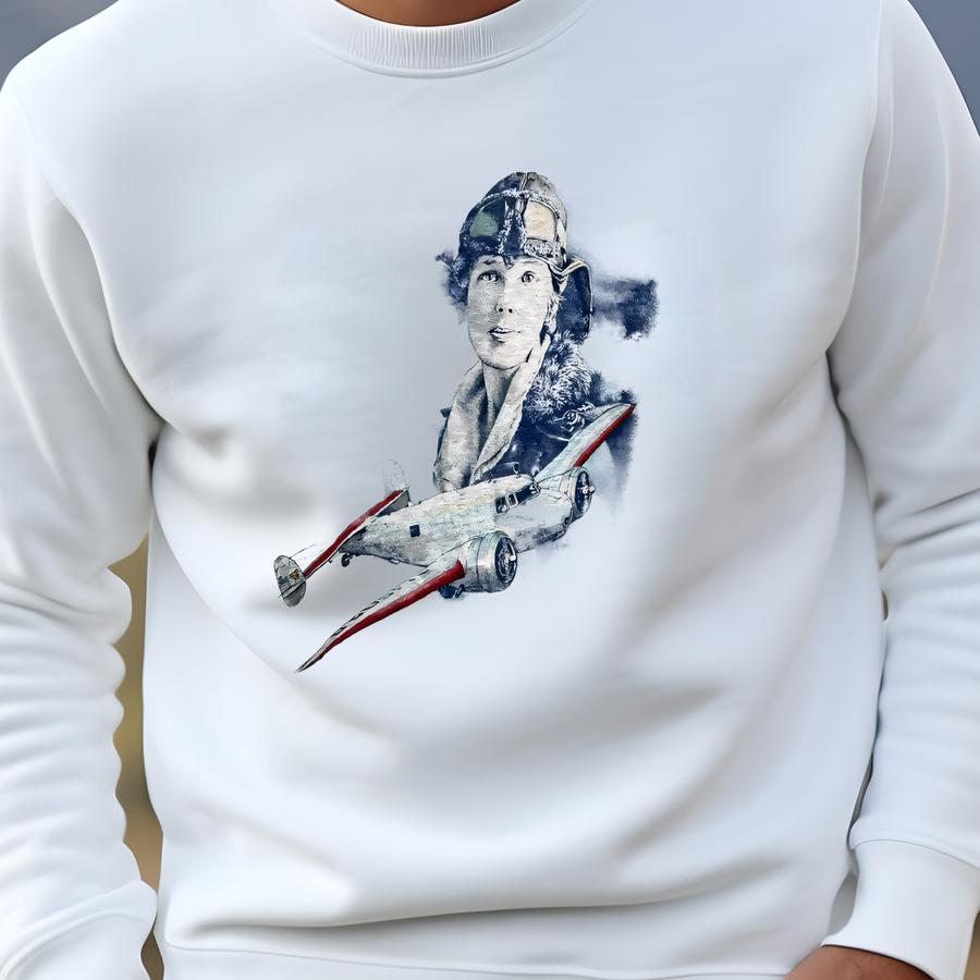 Vintage 1998 Amelia Earhart T-shirt Size M Sophos Art Tee Aviation Pioneer Pilot Airplane History Woman Aviator Lockheed Vega 5b Sweatshirt