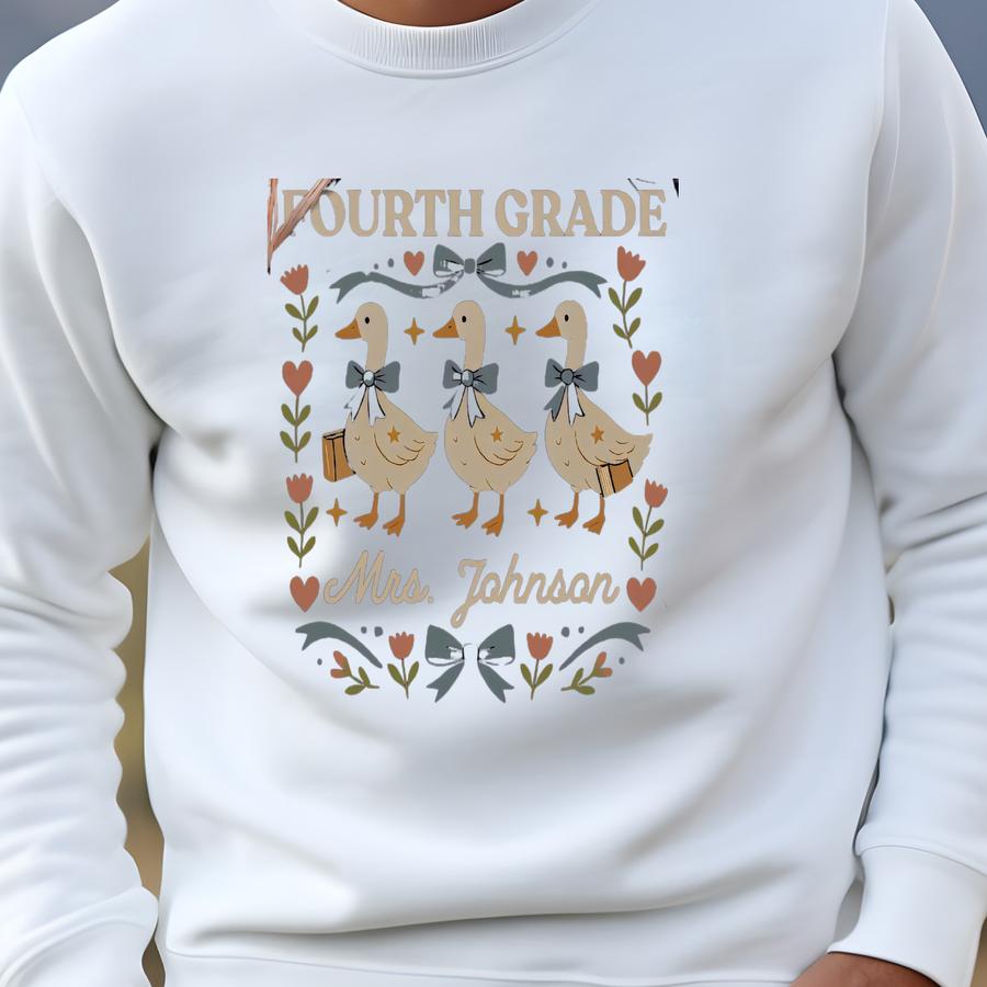 Vintage 80s Goose Fourth Grade Teacher Shirt, Personalized Back To School Tee, 4th Grade Shirt, Retro Cottage Goose Graphic, Teacher Gift Sweatshirt