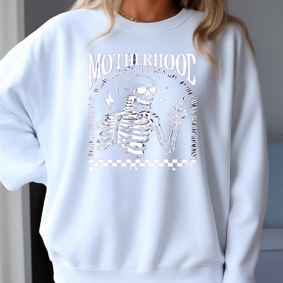 Funny Halloween Mom Sweatshirt: Spooky Motherhood Skeleton Graphic Sweatshirt