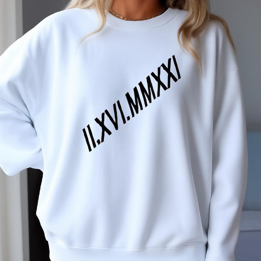 Custom Anniversary Gift For Couples, Sweatshirt With Roman Numerals Date And Sve Initial, Valentines Gift, Gift For Boyfriend Sweatshirt