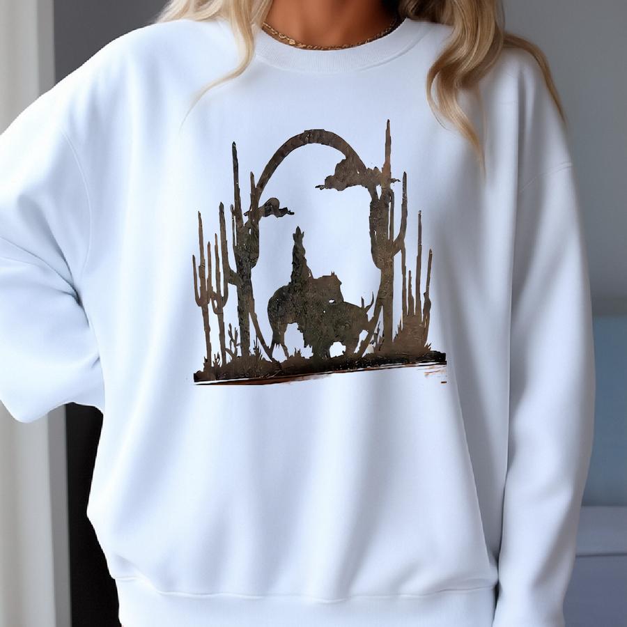 Handmade Reclaimed Wood Cowboy Scene: Rustic Western Decor Sweatshirt