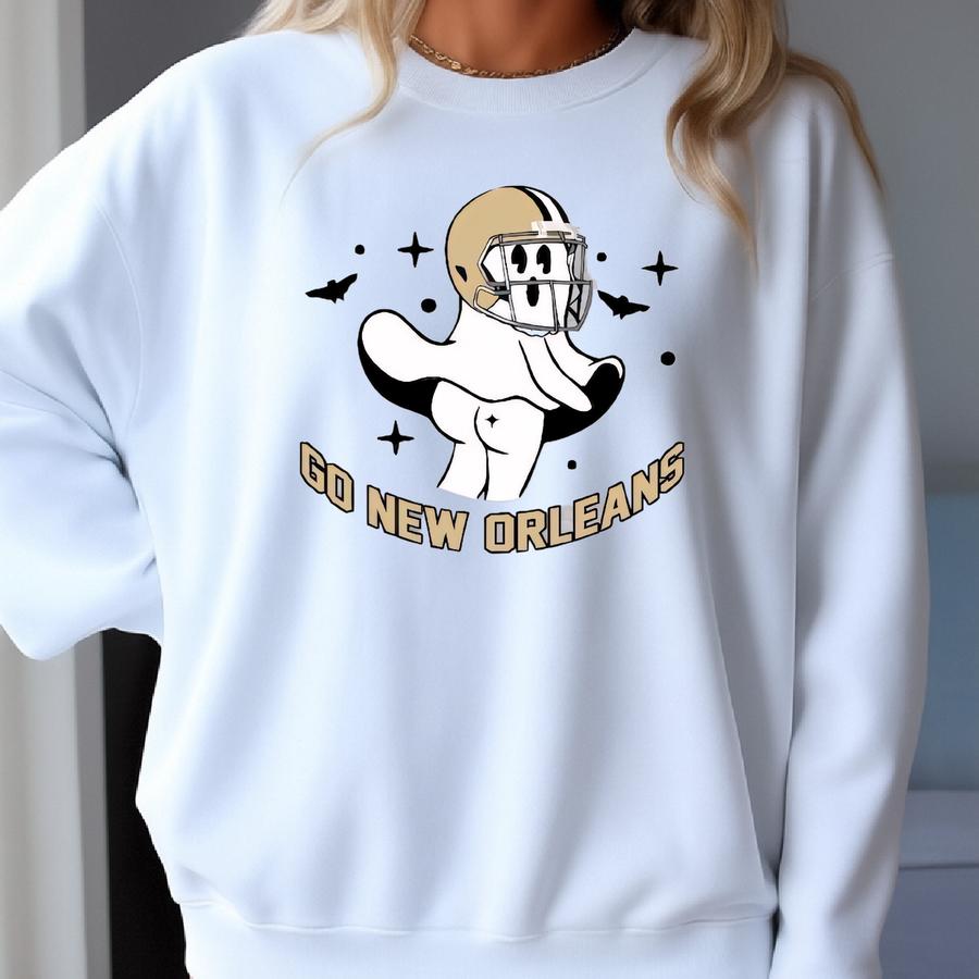 Funny Go New Orleans Football Ghost Vintage Sweatshirt, New Orleans Football Team Cute Spooky Season Hoodie, Football Retro Shirt, For Her Sweatshirt