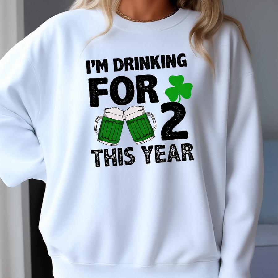I'm Drinking For Two This Year Sweatshirt, Funny Baby Announcement Shirt, St Patrick's Pregnancy Announcement Sweat, Drinking For Two-spd006 Sweatshirt