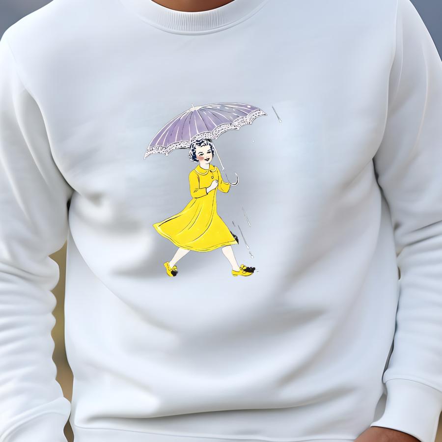 Salty Sweatshirt, Woman With Lavender Umbrella Walking In Rain Shirt, Cute Rainy Days, Inspirational, Woman Standing In The Rain With -fs024 Sweatshirt