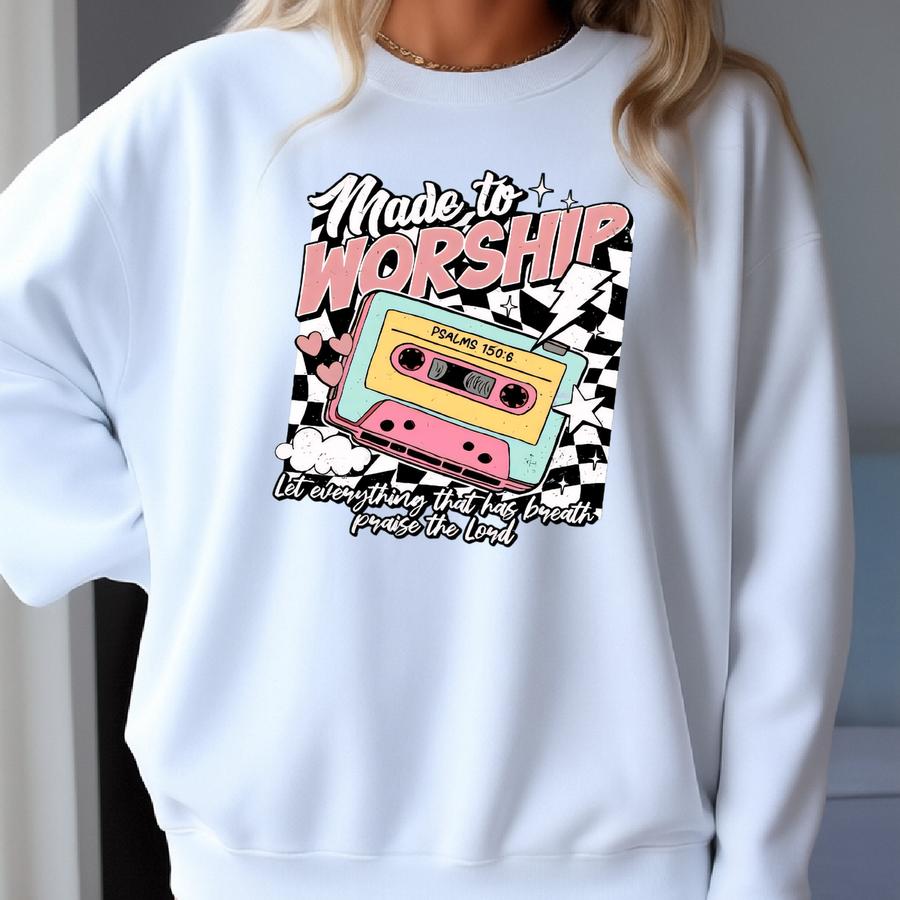 ® Religious Shirt, Retro Made To Worship Shirt, Bible Verses Shirt, Faith Shirt, Religious Gift, Cool Religious Shirt Sweatshirt