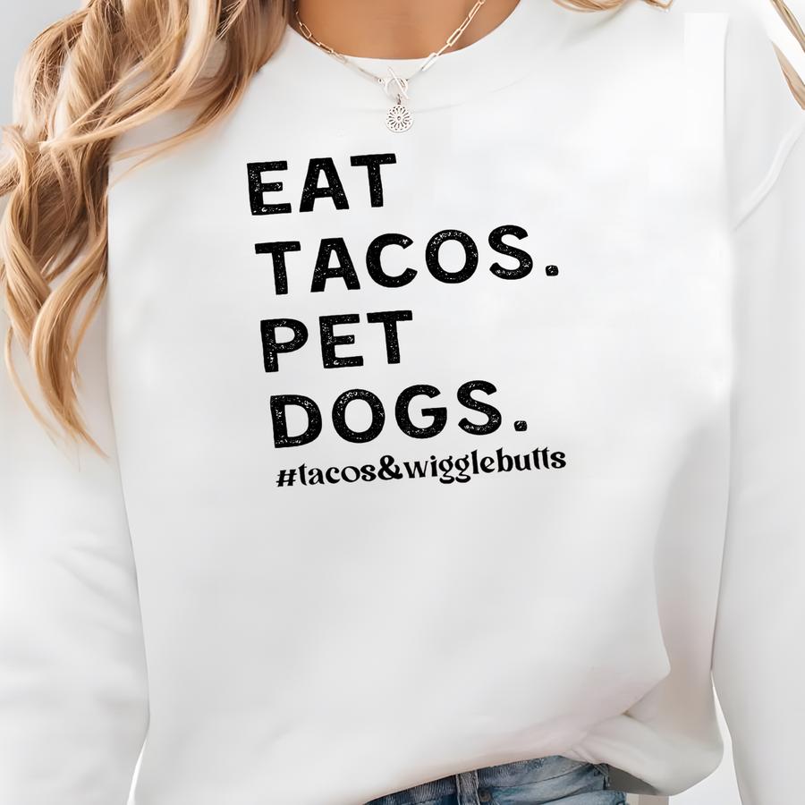 Eat Tacos. Pet Dogs Tacos And Wigglebutts Shirt, Funny Quote Shirts, Funny Tacos, Funny Shirts For Men, Funny Shirts For Women, Tacos Lover Sweatshirt