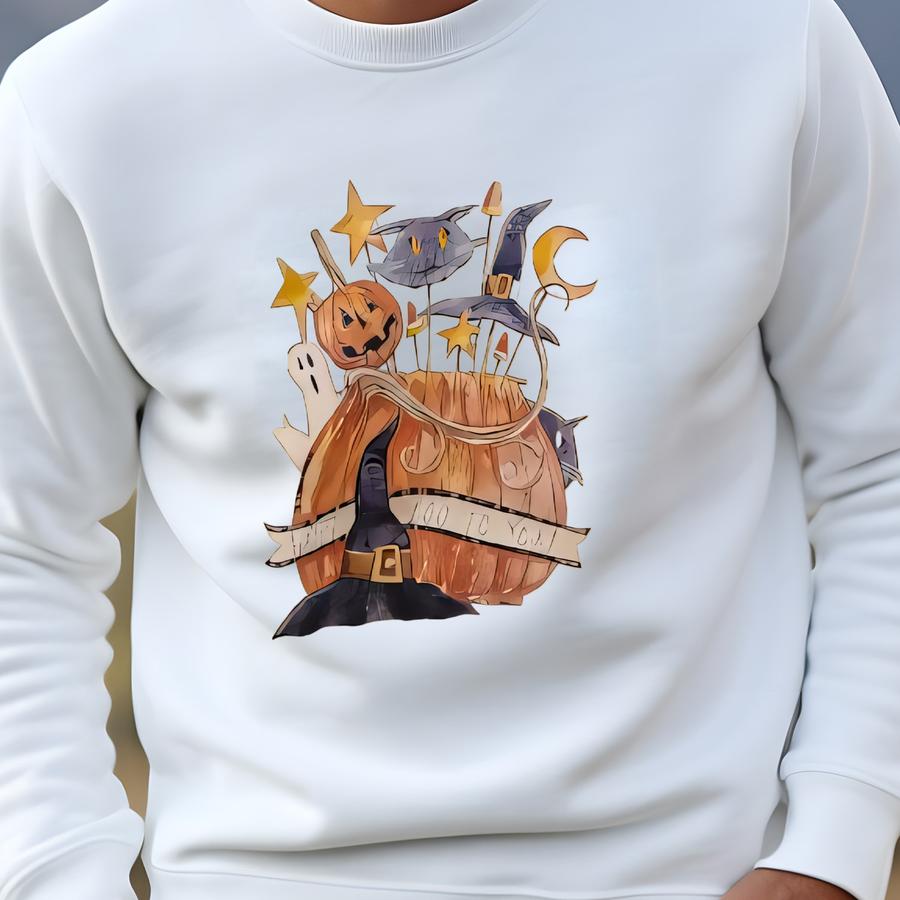 Vtg Y2k Pumpkin Floral Sweatshirt Small Vintage Halloween Sweater Jumper Pullover Crewneck Yellow Size S Sweatshirt