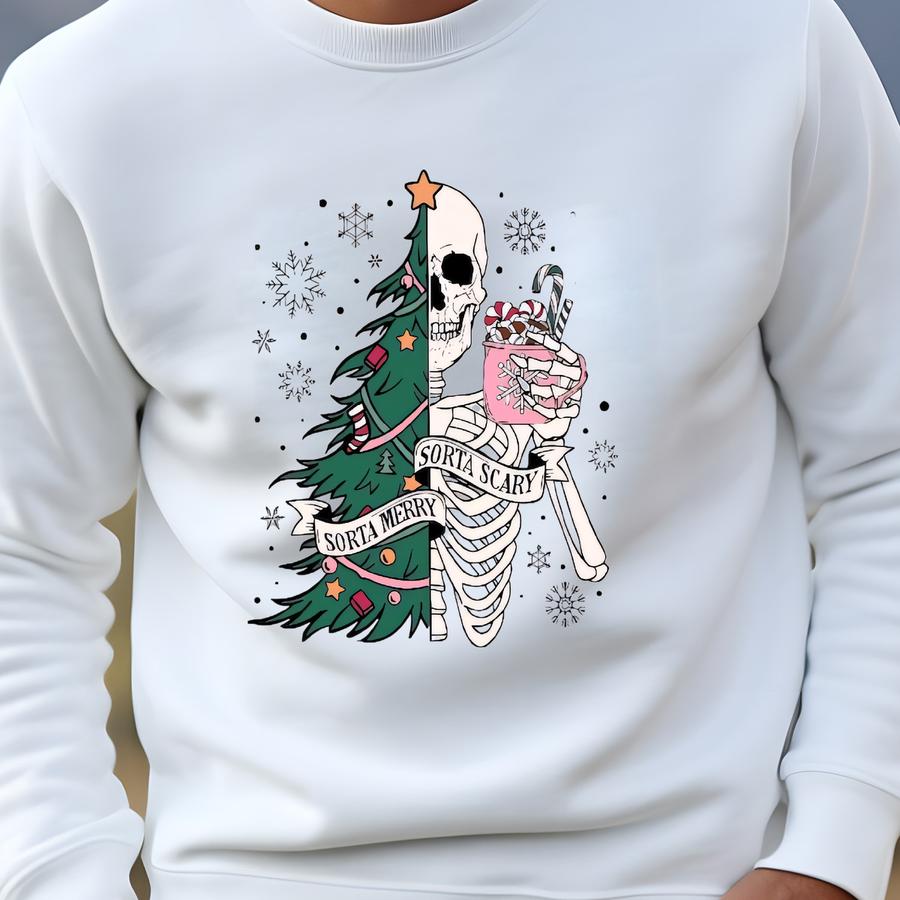 Funny Skeleton Christmas 2024 Ornament, Sorta Merry Sorta Scary Ornament, Christmas Ornament, Funny Christmas Gift Sweatshirt