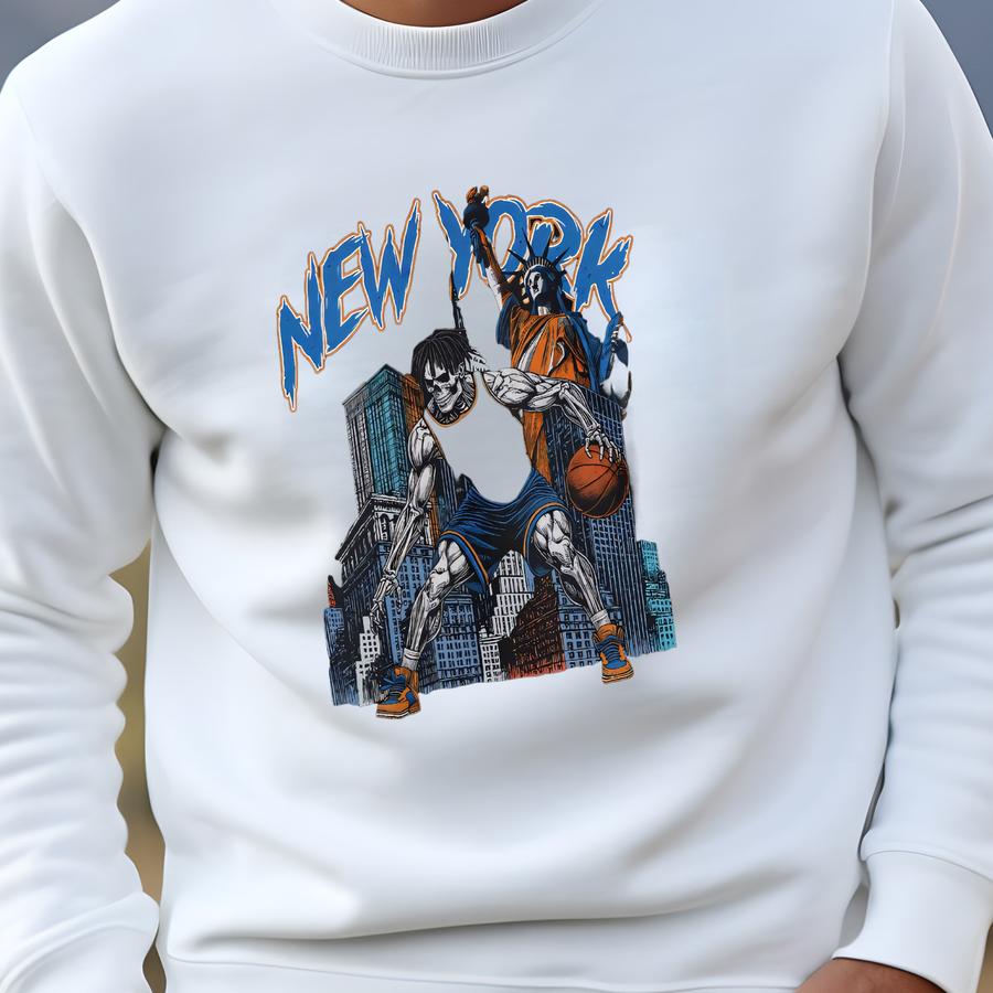 New York Basketball Knicks Sweatshirt - Graphic Tees - Bootleg - Vintage - Skeleton Shirt - Ny Knicks Merch Tee - New York Shirt - Sweatshirt