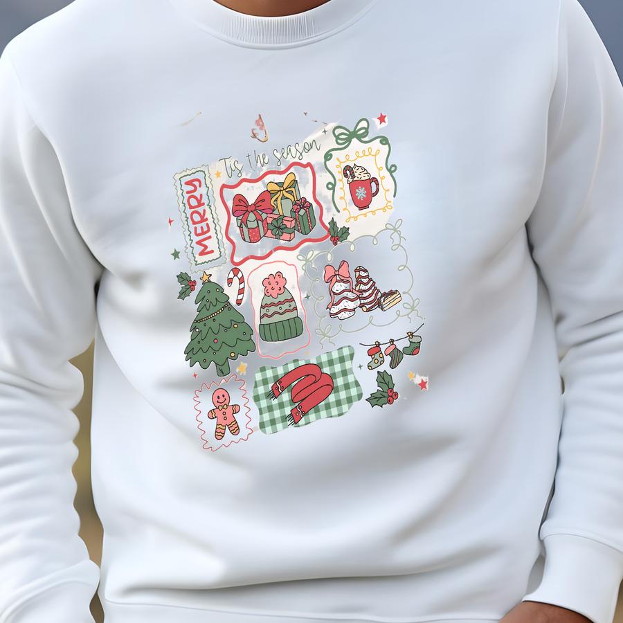 Merry Christmas Shirt, Doodle Drawing, Vintage Holiday Graphic Tee, Festive Retro Christmas T-shirt, Holly Mistletoe Christmas Gift Top Sweatshirt