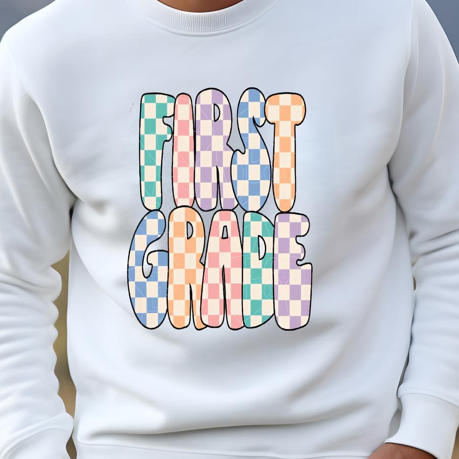 Retro First Grade Png | First Grade First Day Of School Png Back To School 1st Grade Png First Grade Teacher Shirt Png 1st Grade Shirt Png Sweatshirt