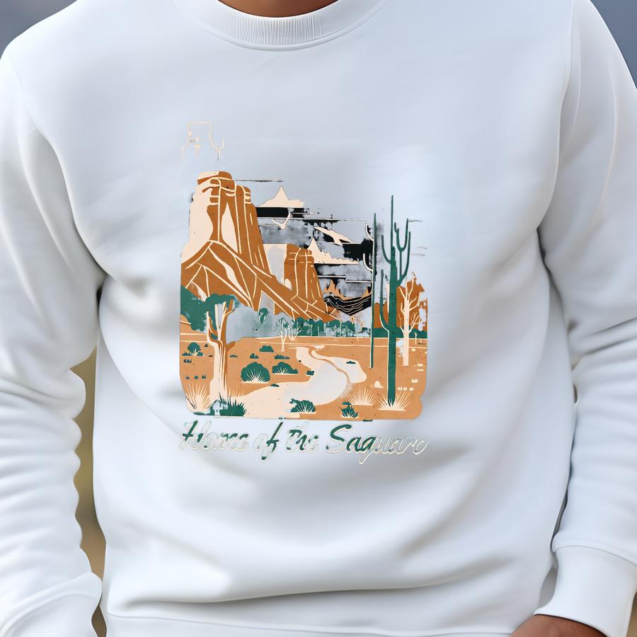 Arizona Saguaro Sweatshirt, Vintage Desert Southwest Top, Canyon Landscape Road Trip Top, Home Of Saguaro Gift, Arizona Sweater, Unisex Sweatshirt