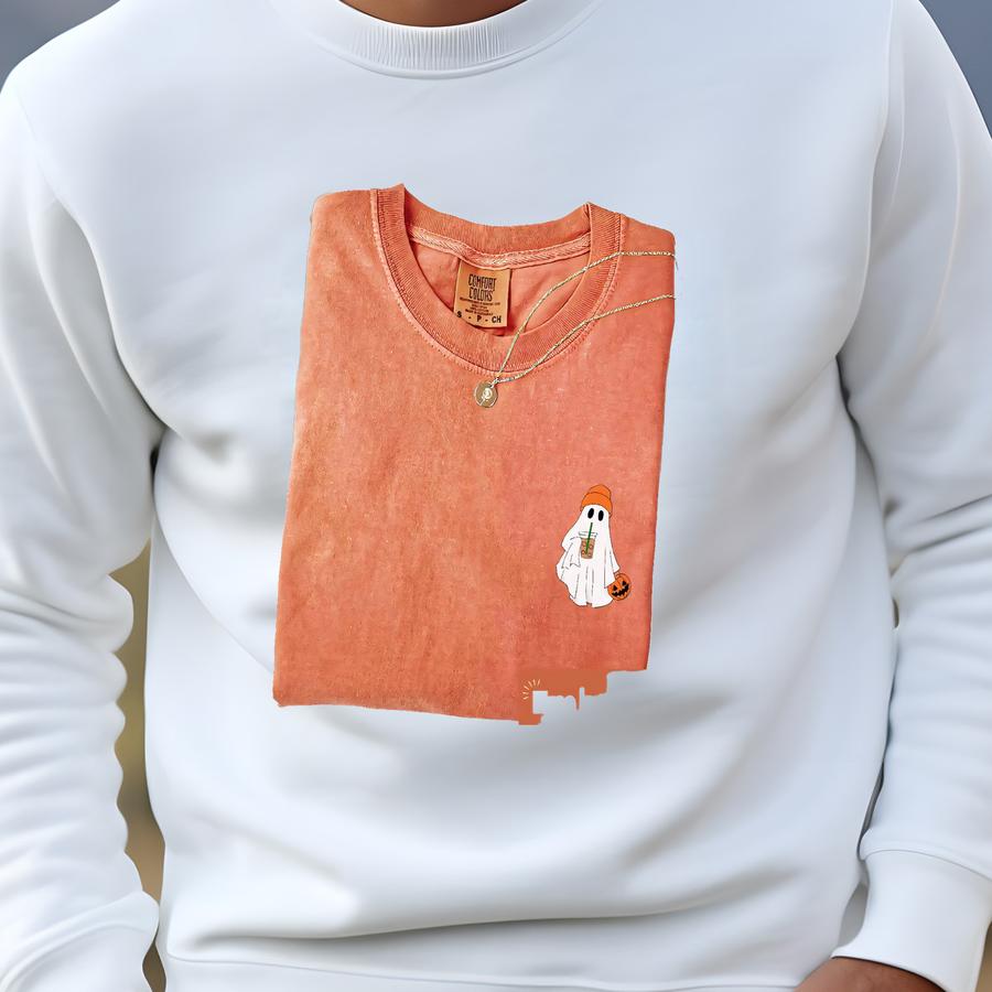 Ghost Coffee Shirt, Fall Tee, Cute Spooky Halloween Shirt, Cozy Ghost Tee, Ghost With Coffee Y Shirt Sweatshirt