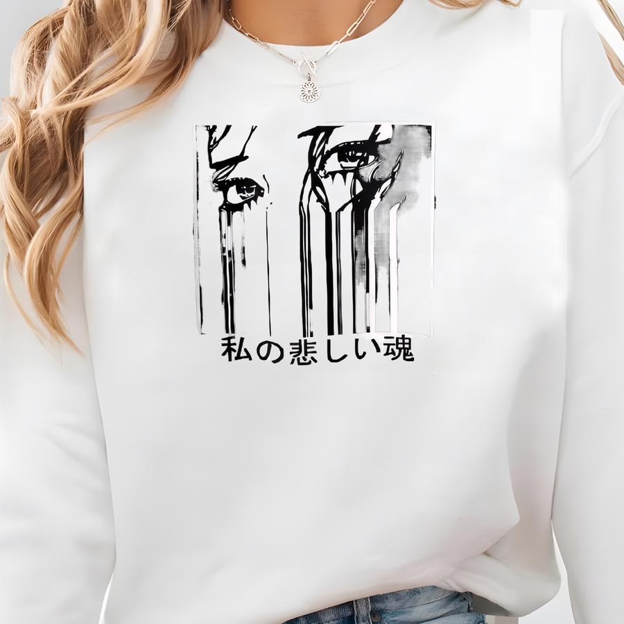 Sad Anime Girl Sweatshirt: Harajuku Japanese Streetwear Sweatshirt