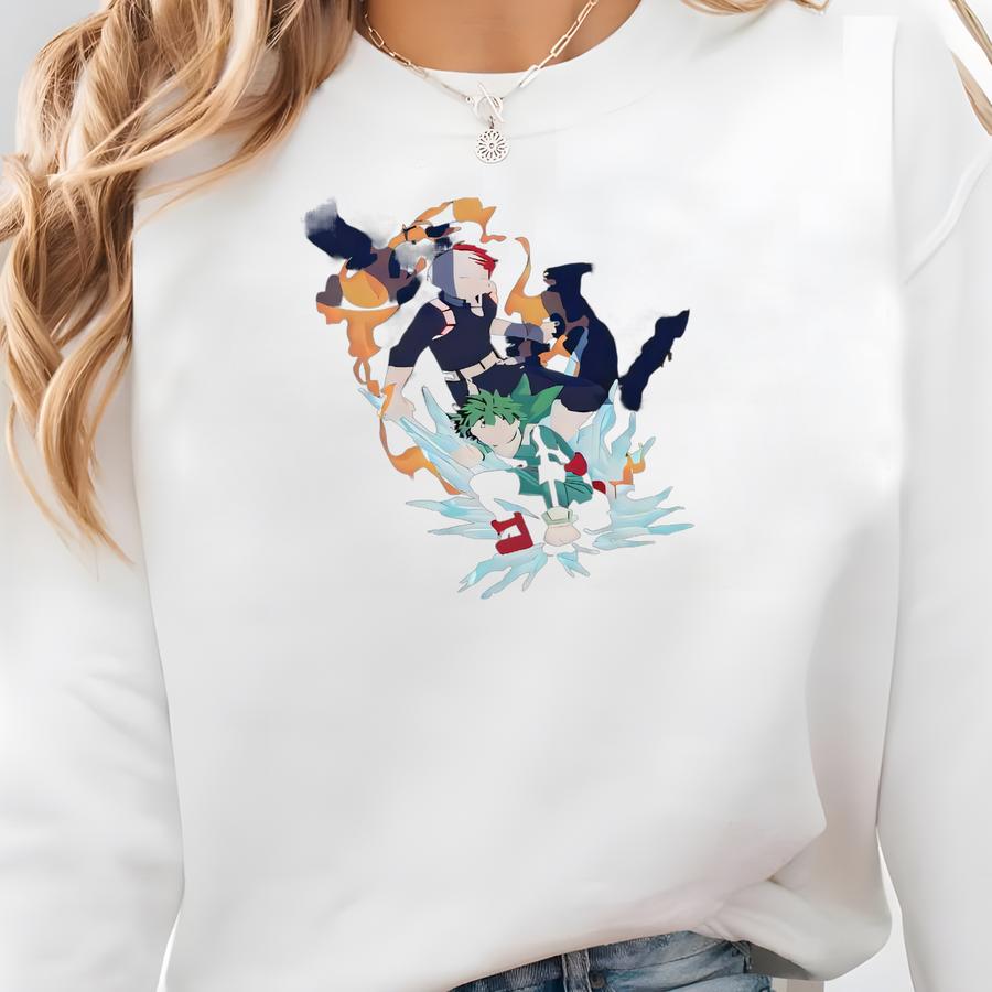 Anime Washed Shirt: 100% Full Cowling-inspired Design, Half-ice Half-fire Tshirt Sweatshirt