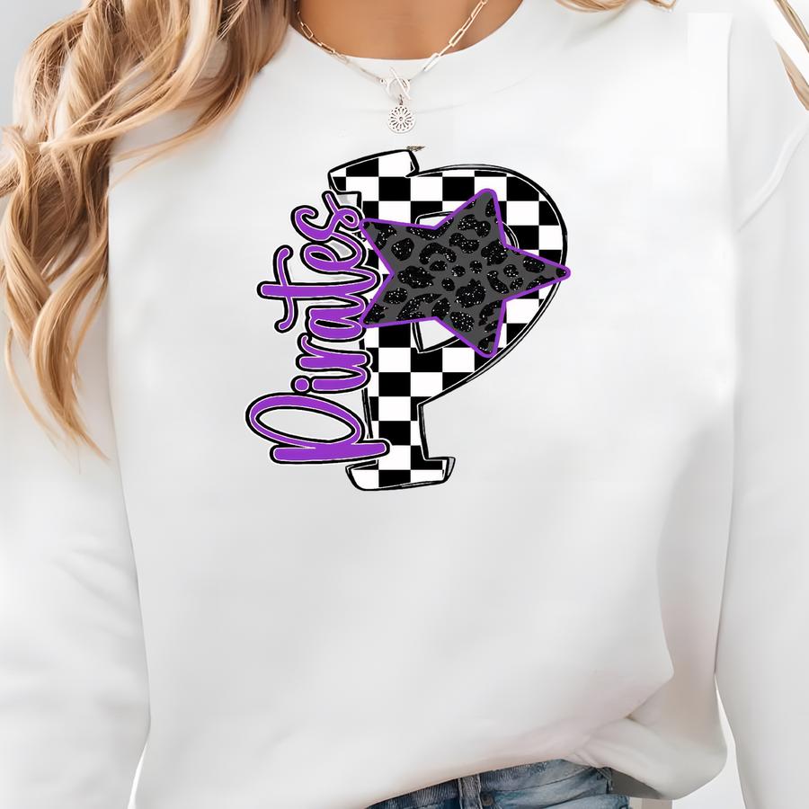Pirates Shirt Pirates Checkered Letter Shirt Custom School Mascot Shirt Pirate Pride Shirt School Spirit Shirt Star Pirates Shirt Game Day Sweatshirt