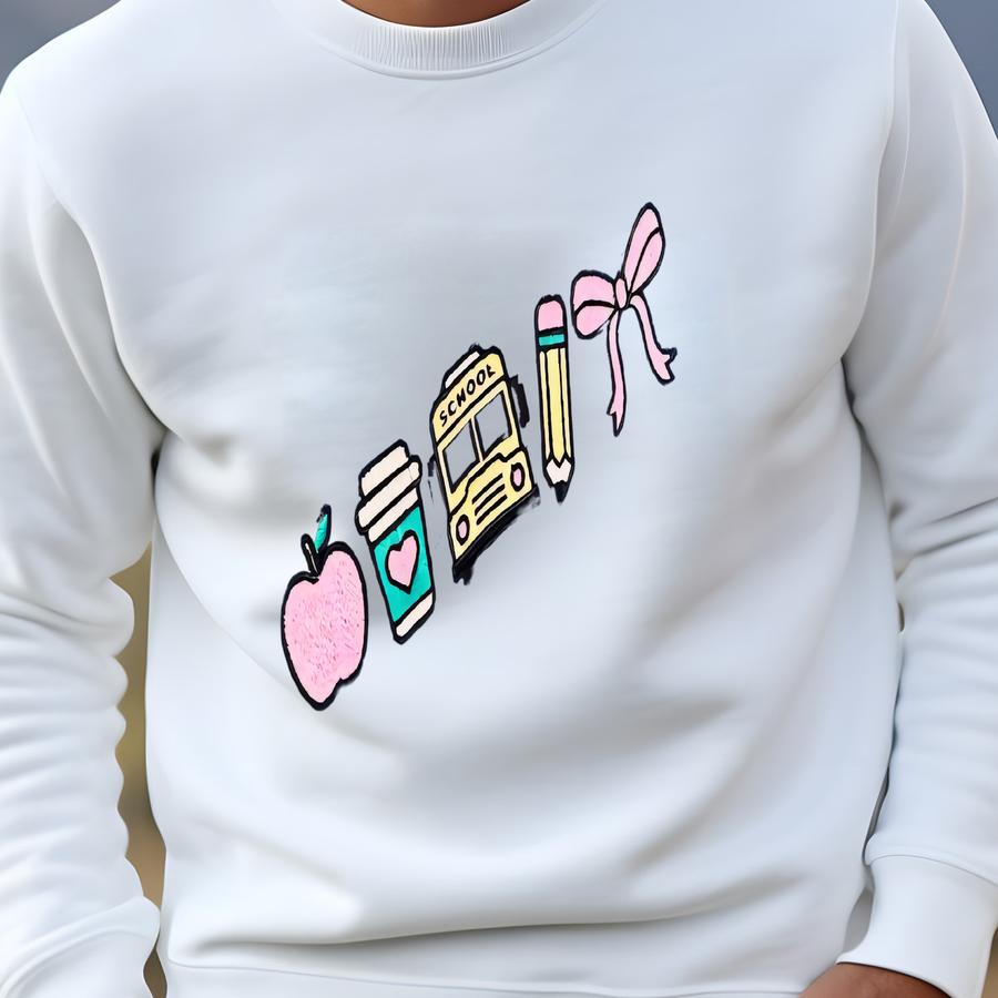 Teacher Icons Sweatshirt, Teacher Gift, Teacher Life, Back To School, Coquette Bow, Teacher Pencil, Cute Teacher Sweatshirt Sweatshirt