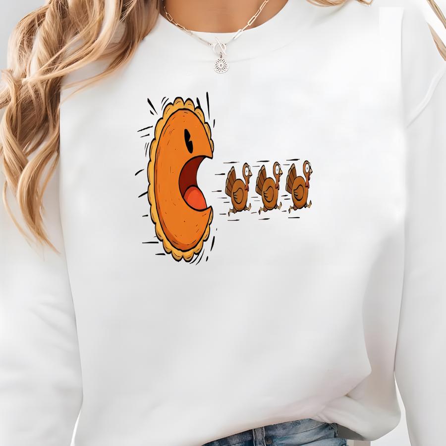 Funny Thanksgiving Crewneck: Retro Gamer Pie Chase Sweatshirt Sweatshirt