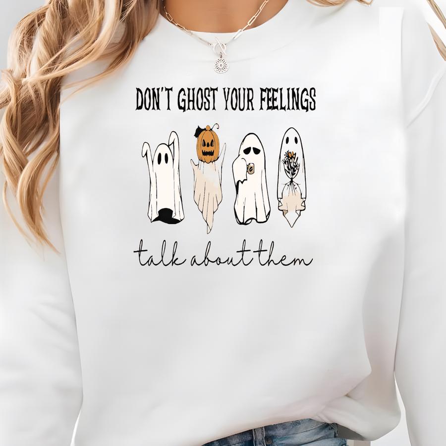 Halloween Don't Ghost Your Feelings Talk About Them Shirt, Halloween Mental Health Shirt, School Psychologist Tee, Halloween Ghost Sweater Sweatshirt