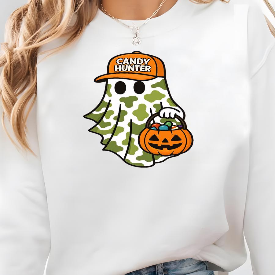 Comfort Color Candy Hunter, Camo Ghost Shirt, Halloween Spooky, Boys Halloween Shirt Sweatshirt