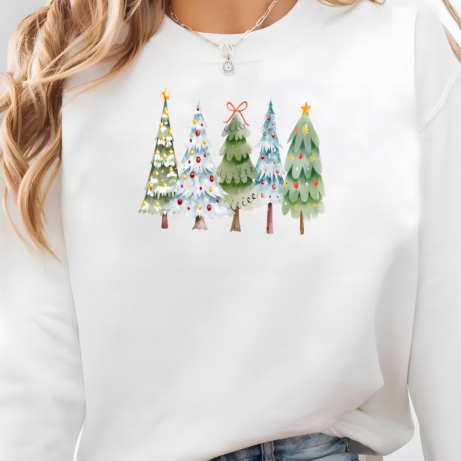 Merry Christmas Tree Shirt, Cute Watercolor Xmas Tree Shirt For Women, Holiday Family Outfit, Winter Tshirt Christmas Gift, Soft Festive Tee Sweatshirt