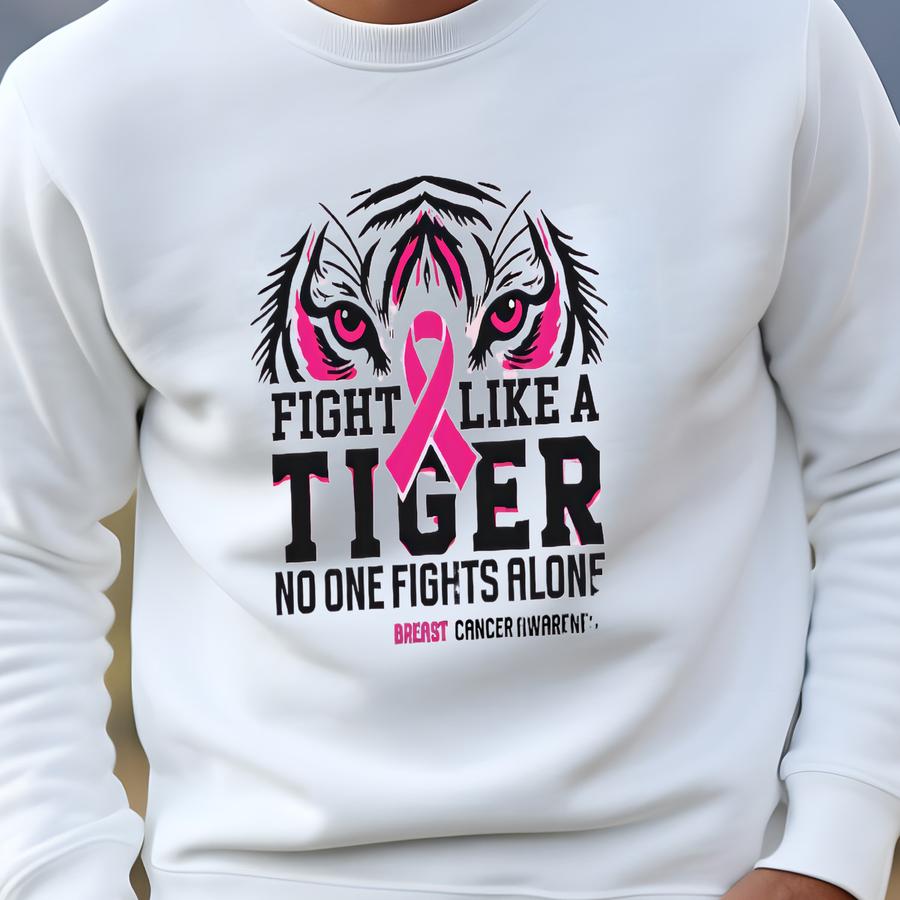 Fight Like A Tiger Sweatshirt | Breast Cancer Awareness Crewneck | Pink Ribbon Support Pullover Sweatshirt