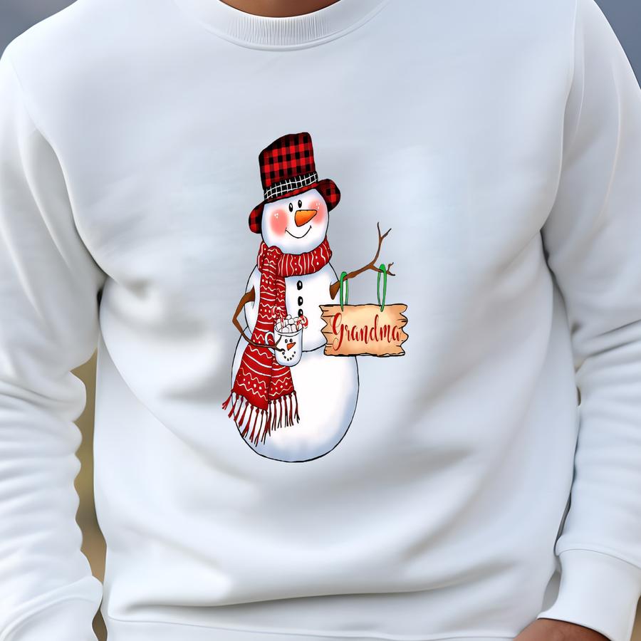 Personalized Name Grandma Snowman Christmas Sweatshirt, Xmas Party Tshirt, Merry Christmas Hoodie, Grandma Grandkids, I Love Being A Grandma Sweatshirt