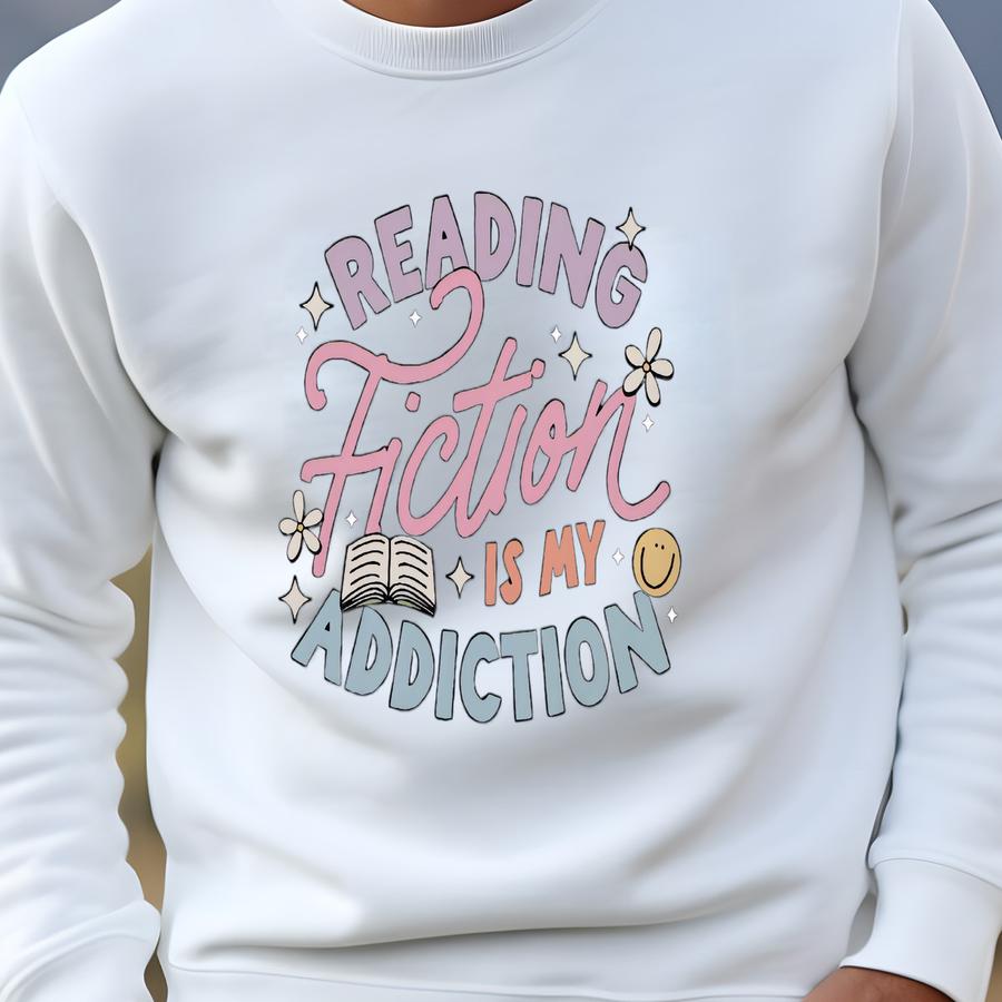 Reading Fiction Is My Addiction Shirt, Bookworm Shirt, Bookish Shirt, Reading Shirt, Book Lover Gift, Librarian Shirt, Book Club Gift Sweatshirt