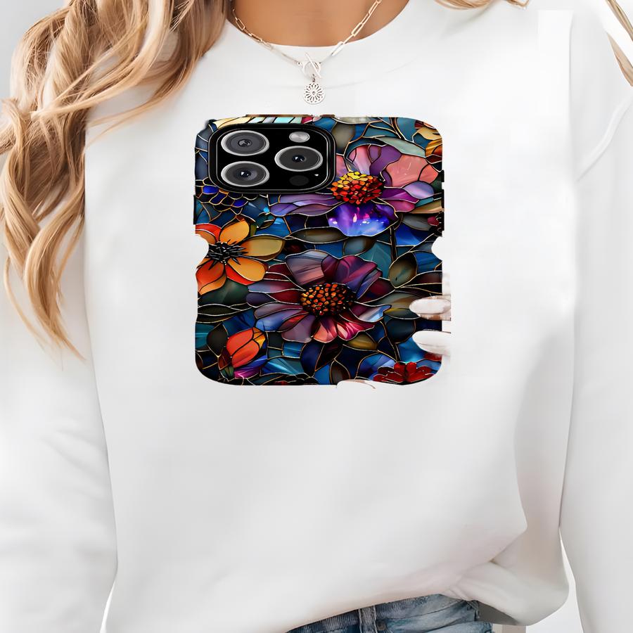 Wildflower Pressed Aesthetic Stained Glass Phone Case, Iphone 17 16 15 14 13 12 Pro Max Mini, Google Pixel 9 8 7 6 5 4 3 2, Y2k Phone Cover Sweatshirt