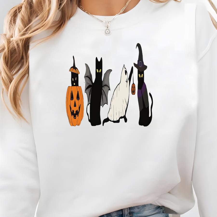 Black Cat Halloween Sweatshirt Spooky Cat Gift Halloween Minimalist Sweatshirt Cute Halloween Shirt Halloween Crewneck Sweatshirt