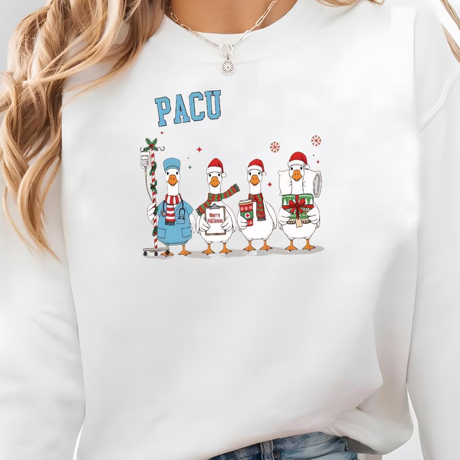 Funny Pacu Christmas Shirt, Goose Nurse Sweatshirt, Pacu Crew Holiday Tee, Funny Recovery Room Shirt, Pacu Nurse Gift, Healthcare Humor Crew Sweatshirt