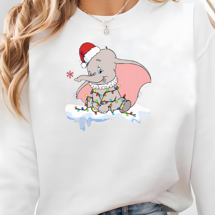 Dumbo Christmas Light Shirt, Cute Dumbo Flying Elephant Christmas Party Tee, Land Tee, Xmas Party Tee, Gift For All Sweatshirt